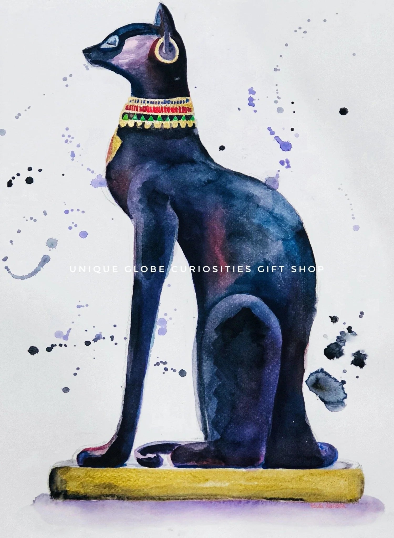 Honor the mystique of the Egyptian cat goddess Bastet with this exclusive A4 full-colour art print, brought to you by Unique Globe Curiosities Gift Shop 🐱✨🎨