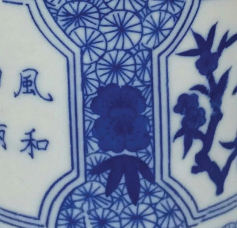 Porcelain Fragrant Flowers Mug – Lidded Blue & White Chinese Mug | Floral Panels & Poetic Quotation