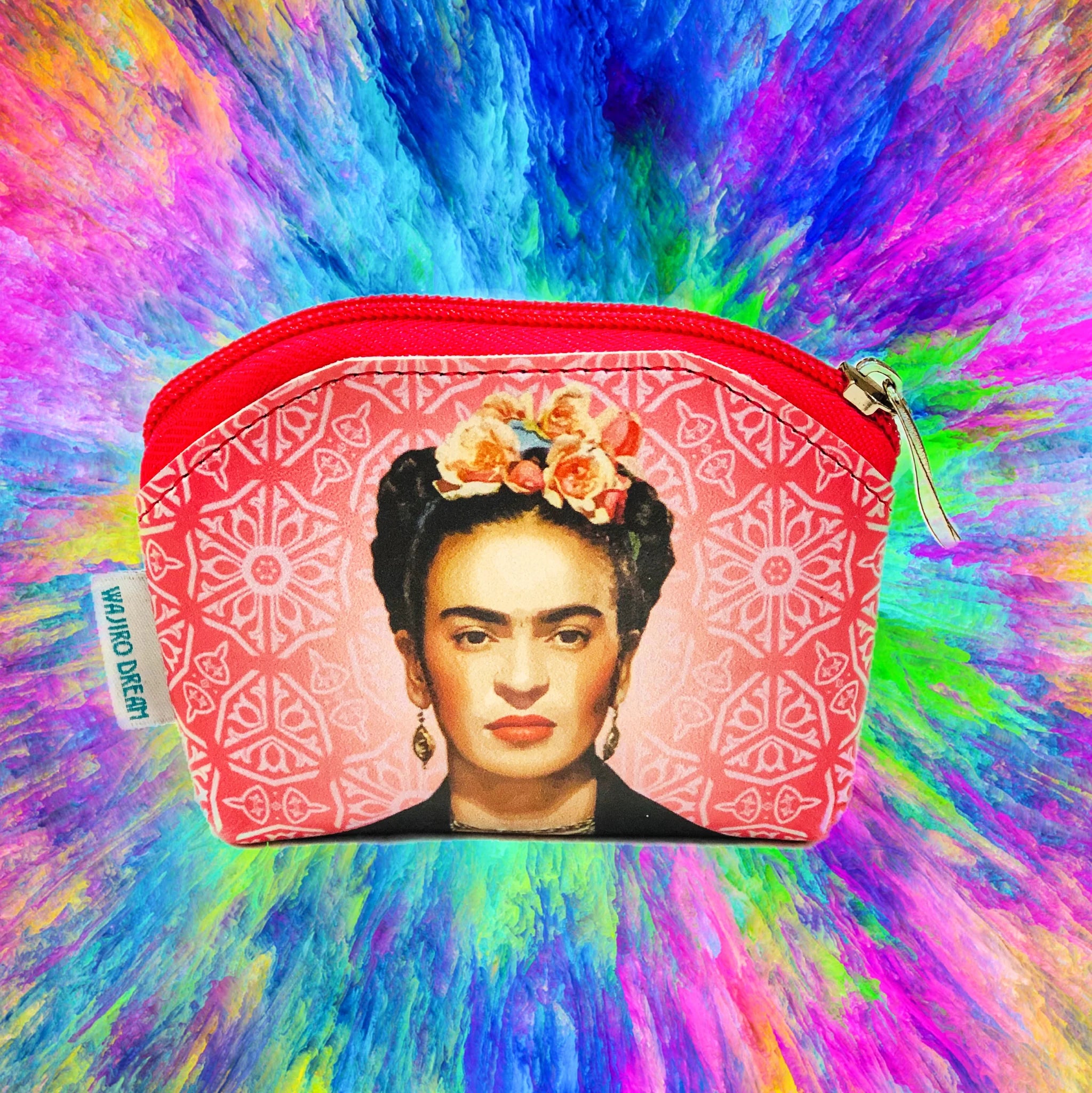 🌺🎨 Frida Kahlo Coin Purse with Flowers | Handmade MexiPop Art by Wajiro Dream