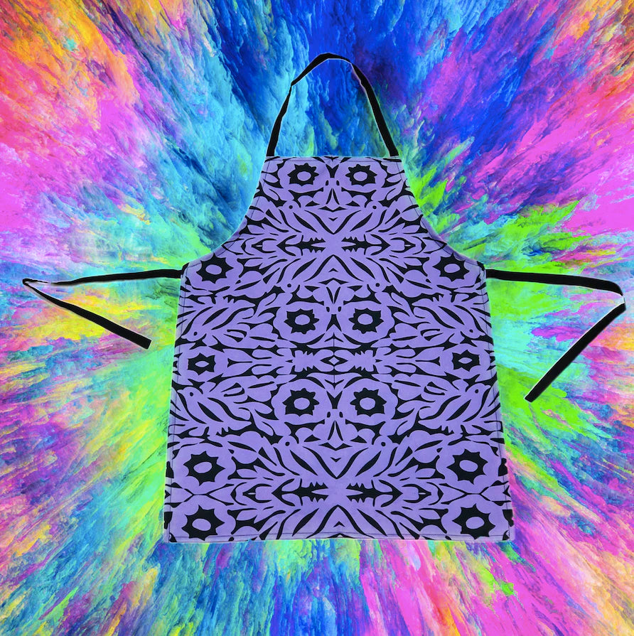 Mexican Oaxaca Embroidery Design Apron – Purple | MexiPop Art by Wajiro Dream