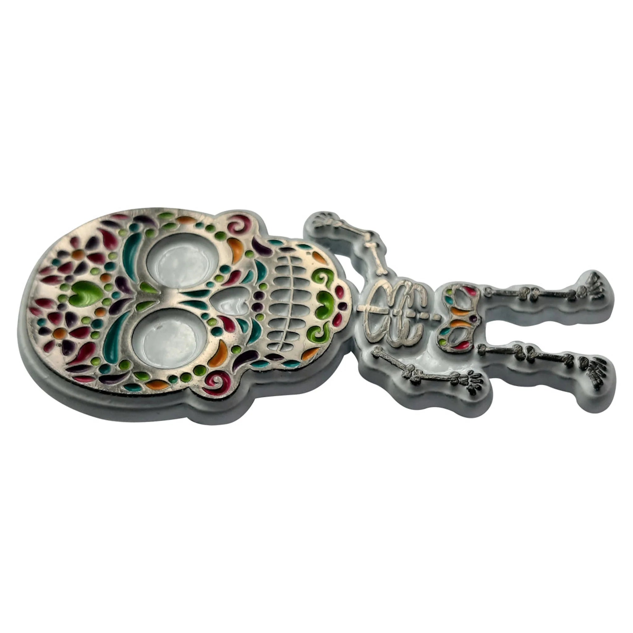 This Mexican Skeleton Metal Pin Badge is a bold and joyful tribute to Día de los Muertos (Day of the Dead), a vibrant tradition honouring ancestors and loved ones. Its whimsical calavera (skull) design reflects the Mexican spirit of remembering the dead with love, laughter, and colour.