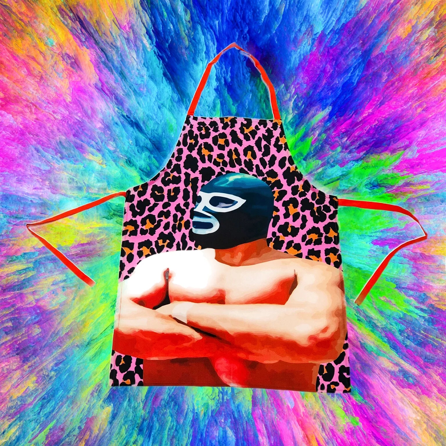 This apron celebrates the colourful legacy of Mexican wrestling (Lucha Libre) with an unexpected twist—animal print meets masked mayhem. A wearable tribute to one of Mexico's most electrifying cultural exports.