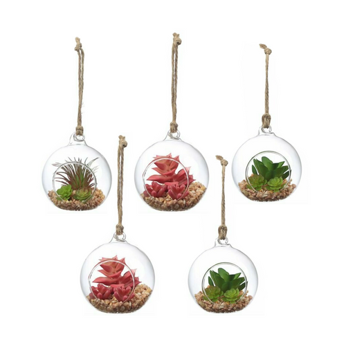 🌵 Set of 5 Mini Glass Cactus Ornaments – Mexican Terrarium Globe Style (8cm)