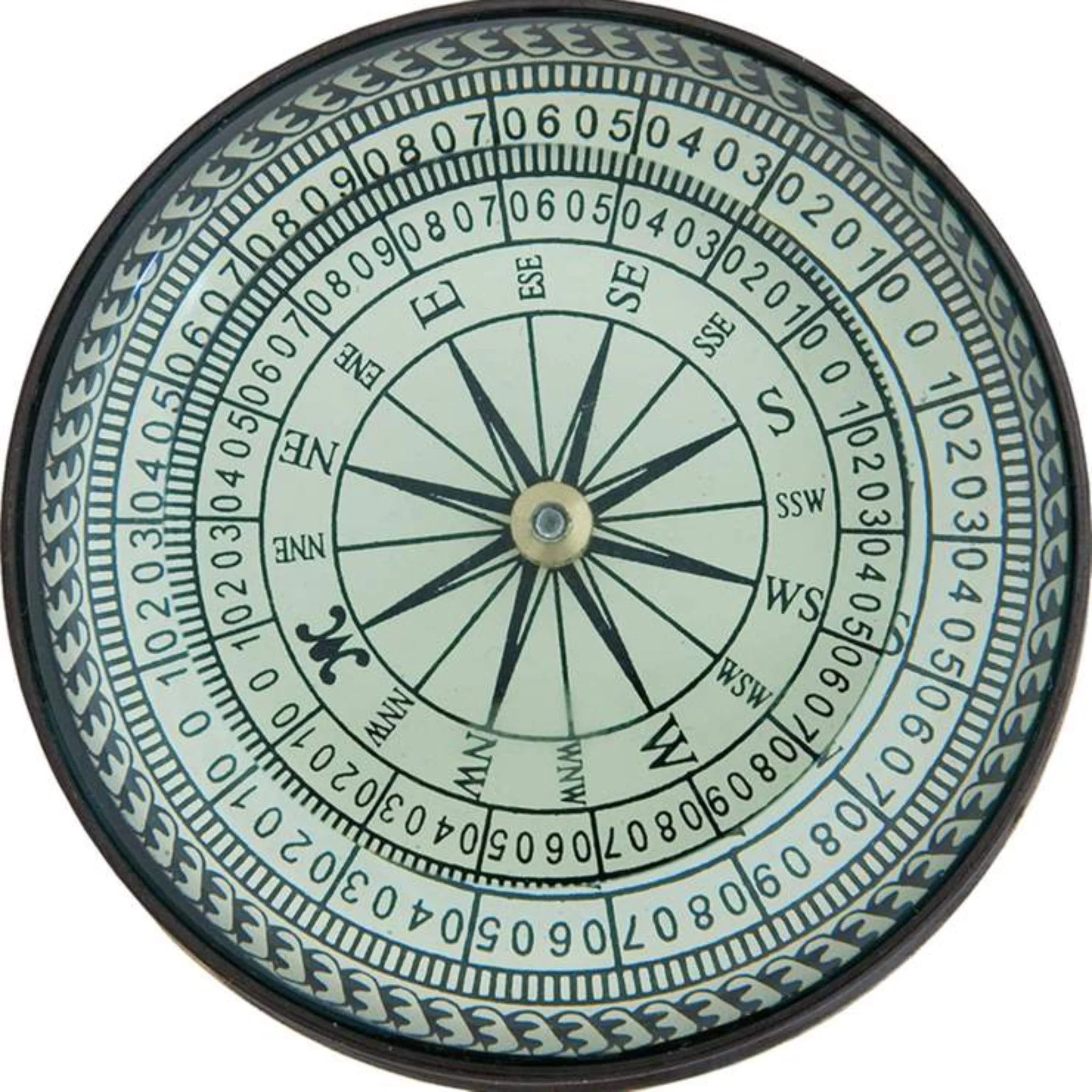 Bring timeless charm and function to your desk or gift collection with this solid brass compass featuring a glass magnifying dome. Designed for clarity and style, the magnified face enhances readability while doubling as a decorative desk accessory or paperweight.