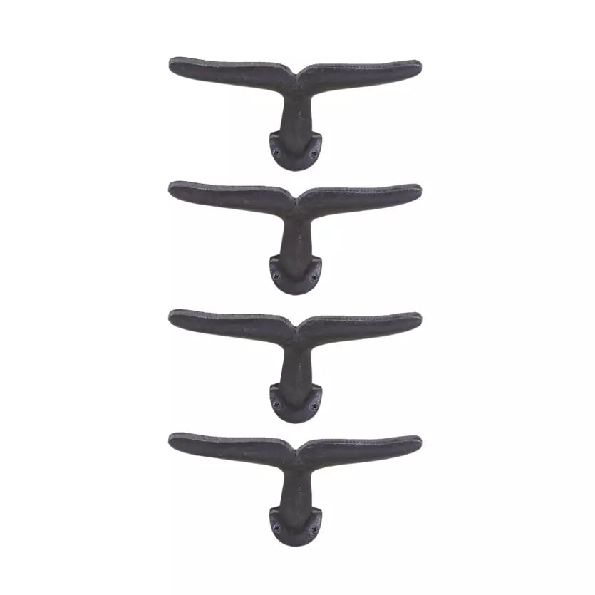 Set of 4 Cast-Iron Whale Tail Coat Hooks – Nautical Wall Decor