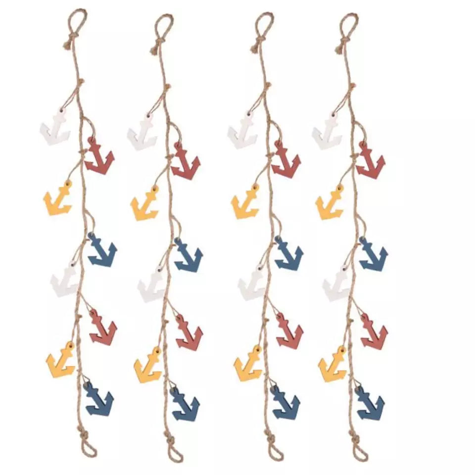 Set of 4 Nautical Anchor Garlands – Colourful Wooden Decoration (95cm Each)