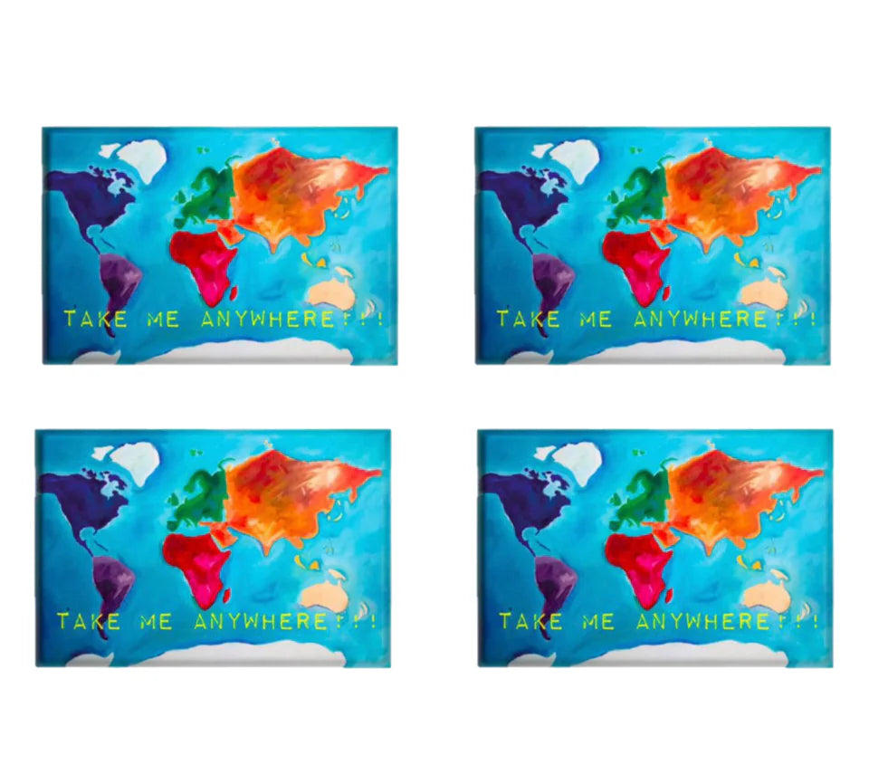 This Set of 4 World Travel Map Fridge Magnets features vibrant, full-colour artwork by Paula Molina, celebrating the spirit of adventure and global wonder 🌍✨