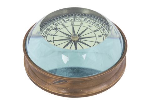 Brass Compass with Magnifying Glass – 7.5cm Paperweight Compass